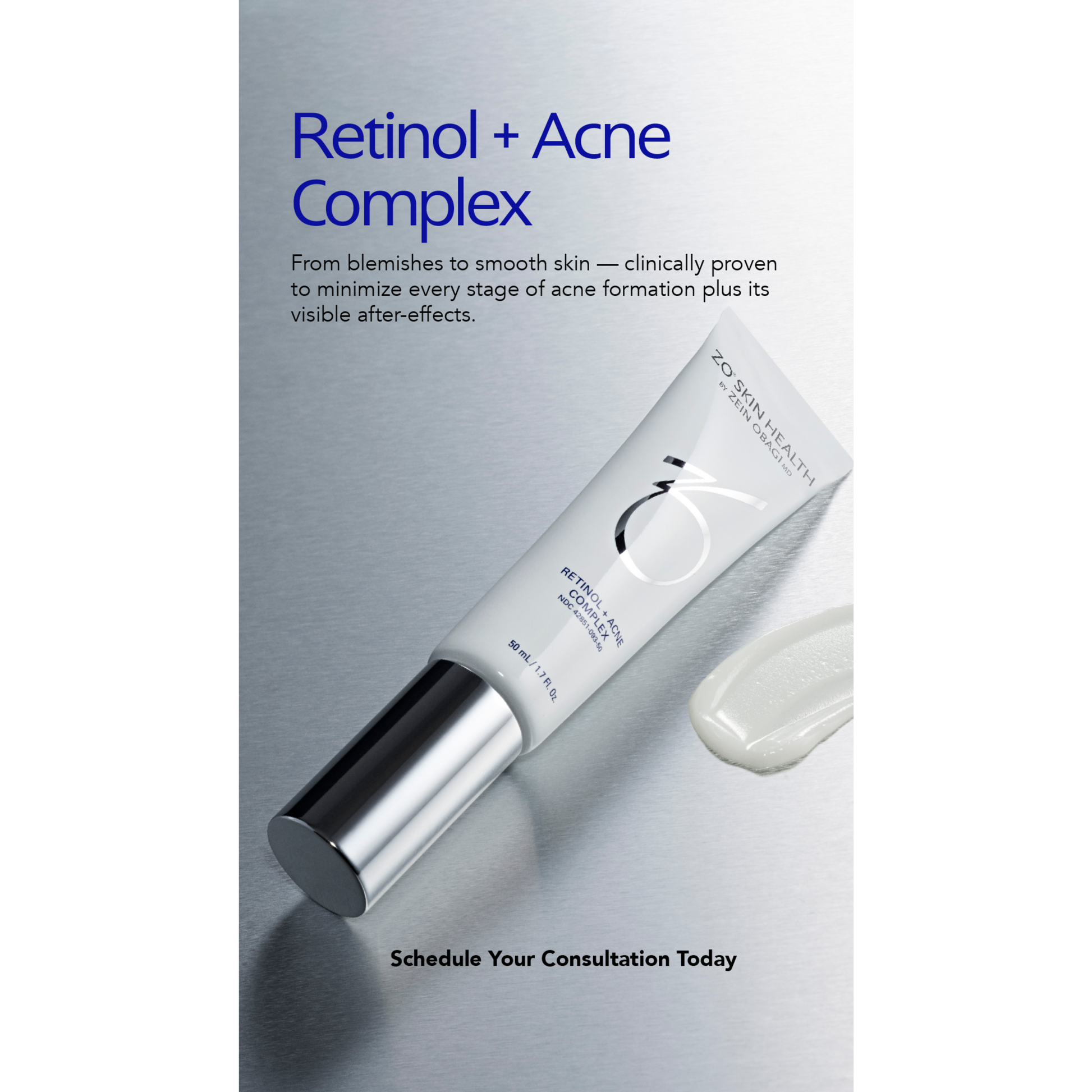 From blemishes to smooth skin -- the Retinol + Acne Complex is a comprehensive solution for moderate + severe acne that is clinically proven to minimize every stage of acne formation plus its visible after-effects.
